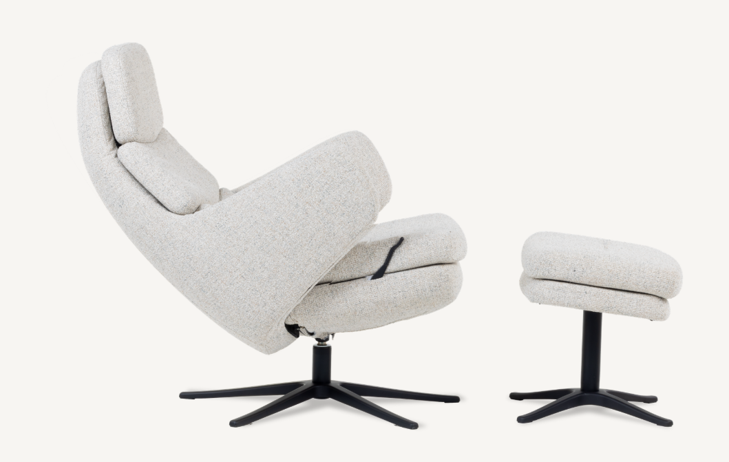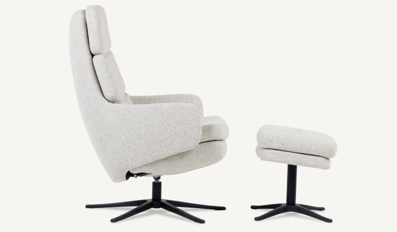 The Lyra chair presents a modern interpretation of the Classic Space manual chair and ottoman, featuring sculpted contours and a sleek, updated profile. Its gentle curves and balanced dimensions provide an elegant fusion of aesthetic appeal and ergonomic support, resulting in a design that is both enduring and contemporary. Crafted with reliable workmanship, the Lyra ensures sustained comfort alongside sophisticated visual appeal.