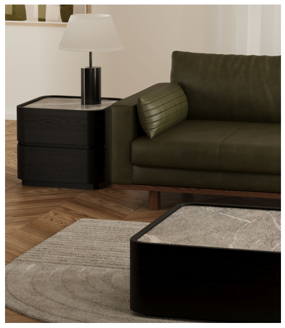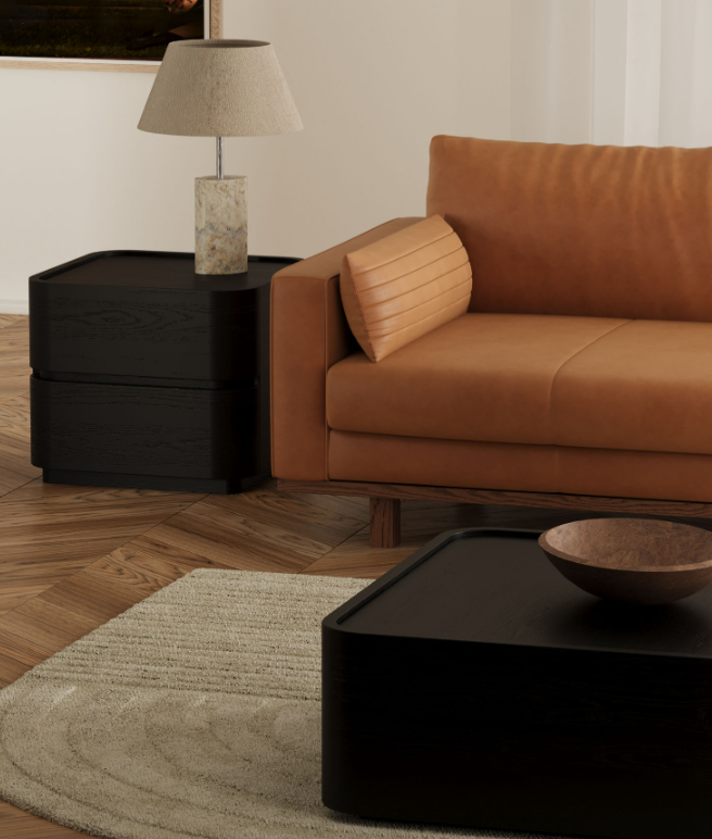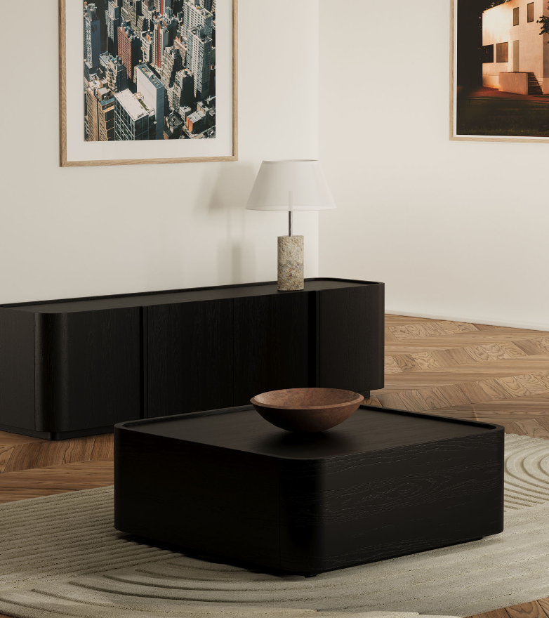 The Leonard Coffee Table presents a choice of refined finishes to suit your aesthetic preferences. Select from a premium American oak veneer top for warm, natural elegance, or opt for the stone inlay top for a more dramatic, contemporary statement.