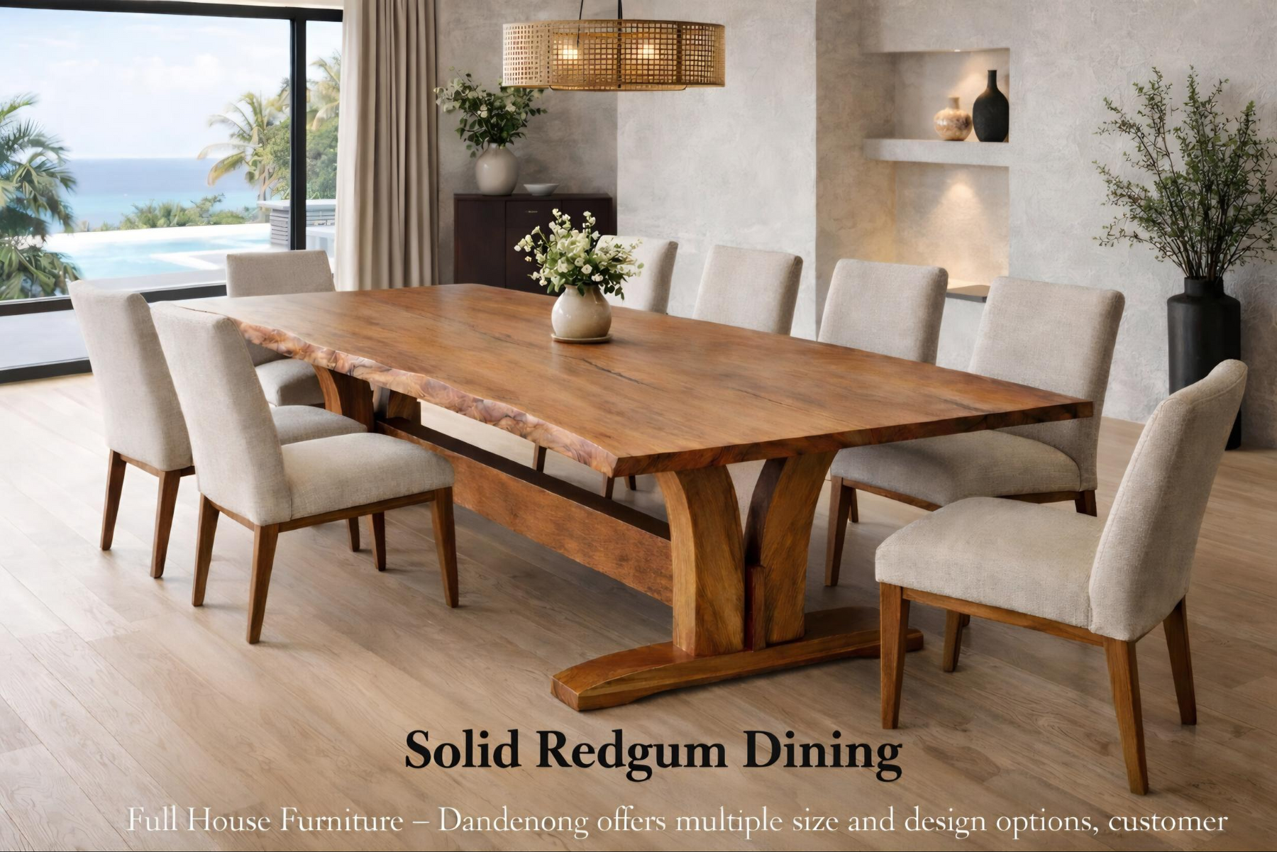 Unique one piece - ( slab ) table tops available upon request. We are able to access these one off pieces in various sizes, limited pieces available and apply different leg styles to create a stunning show piece within your home. Talk with our friendly staff to create your own masterpiece.